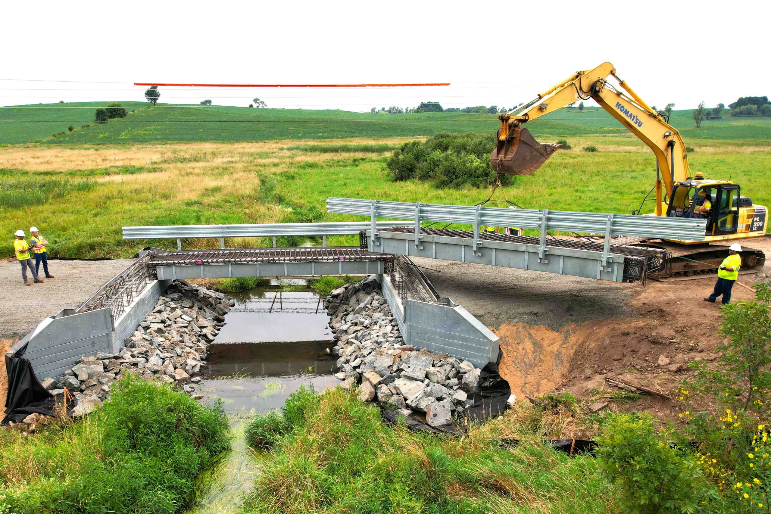 The InQuik Bridge System streamlined the construction process, enabling a simplified, de-risked installation methodology. The use of offsite fabrication not only reduced the demand for skilled labor but also facilitated safer handling due to the lightweight bridge components. The result was an accelerated four-week construction period, compared to the traditional three-to-four-month timeline that we normally see for fully formed and cast on-site bridges.