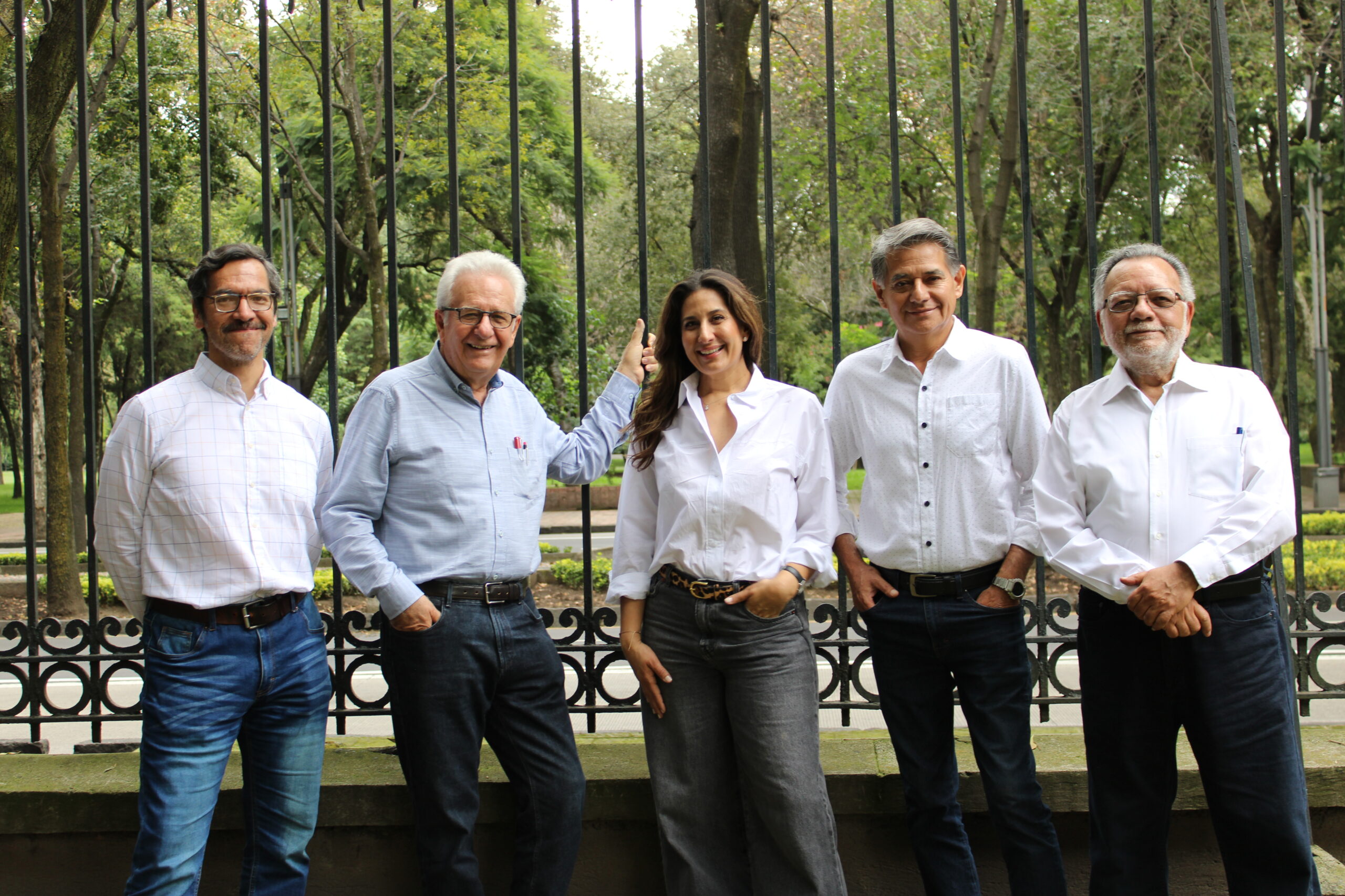 L to R – Carlos Rascón (Architect), Mario Schjetnan (Founding Partner & Dir.), Ana Schjetnan (Partner), Marco A. González (Sr. Associate), Manuel Peniche (Sr. Associate). Photo courtesy Grupo de Diseño Urbano and The Cultural Landscape Foundation.