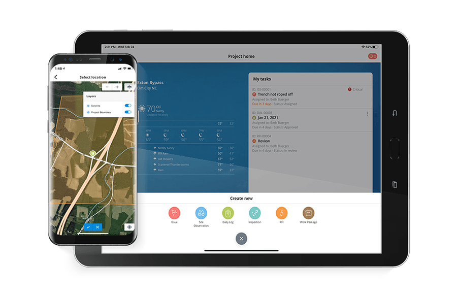 SYNCHRO lets you manage tasks and data in context to the project with dashboards, map views, and 2D and 4D models on desktop, mobile, or wearables. Image courtesy of Bentley Systems.